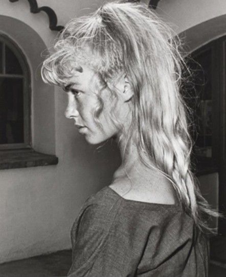 Sylvette David était probablement encore adolescente lorsque son père, qui était allé voir la pièce de théâtre Antigone et avait beaucoup apprécié la coupe de cheveux de l’actrice principale – une queue de cheval très haute, avec sans doute des accroche-coeur autour du visage -, avait dit à sa fille que ça lui irait très bien. Sylvette a essayé, et elle a aimé. Cette coupe de cheveux originale, d’inspiration greco-antique, combinée à la frange de Sylvette et ses mèches rebelles sur le côté, à son incroyable blondeur scandinave, lui permit très vite de se démarquer, durant ces années d’après-guerre rigoureuses et austères, où les jeunes filles qui voulaient styliser leur chevelure copiaient encore pour beaucoup les permanentes rigides et les boucles laquées de leurs mères, ou se contentaient de mises en beauté plutôt sages. Et d’attirer l’attention de Pablo Picasso qui, après l’avoir repérée alors qu’elle était en vacances dans le Sud, lui consacra en 1954 toute une série ; elle entra dès lors dans la postérité comme la jeune fille à la queue de cheval. Dès lors, elle s’est trouvée courtisée de toutes parts. D’une timidité sauvage, d’un tempérament vital et donc peu attirée par la célébrité, elle a refusé beaucoup de propositions pour lesquelles d’autres filles de son âge – dont sans doute Brigitte Bardot – se seraient ardemment battues, notamment un film avec Jacques Tati. Elle a cependant accepté de poser pour Paris Match cette même année. Sa coupe de cheveux a fait beaucoup d’émules. Un vrai phénomène. On a très vite appelé ça la coupe Sylvette. A une époque où les valeurs puritaines et patriarcales primaient encore, faisant peser leur plus lourd couvercle sur la société, et tandis que la nouvelle génération commençait doucement à vouloir fuir cette emprise, cette coiffure inédite détonnait et ne ressemblait à rien de ce qu’on voyait alors. Elle symbolisait la liberté, la jeunesse, l’insoumission mutine, la rébellion, le naturel. Beaucoup de jeunes filles se sont alors pressées de la copier. Beaucoup de jeunes filles… dont une certaine Brigitte Bardot, qui suivit aussi le mouvement, et adopta non seulement la coupe Sylvette, mais aussi le style de cette dernière, en vogue à cette époque : ballerines, imprimé vichy, jupes et pantalons serrés à la taille, hauts à col ouvert, style décontracté…